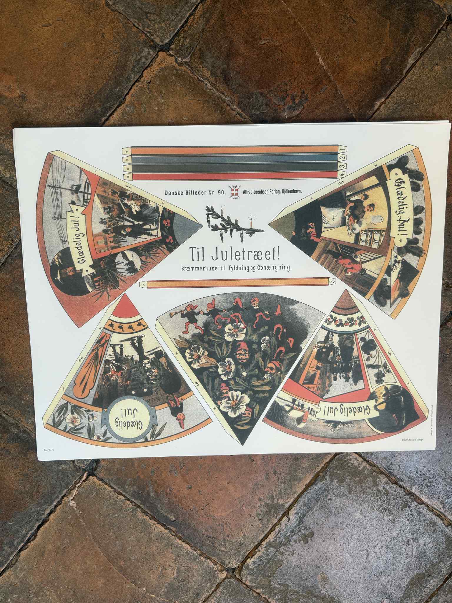 Kræmmerhuse til juletræet. Motiverne er juletræ og glædelig jul
